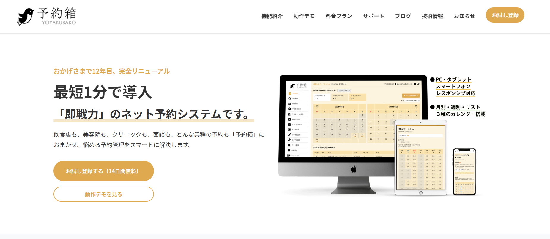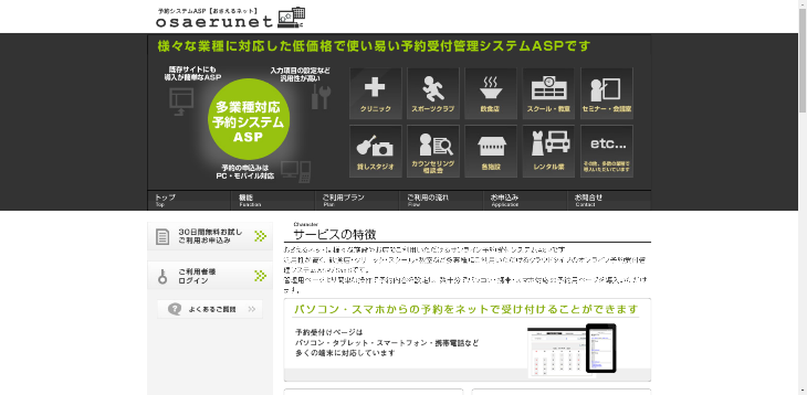 業種を限定しない高い汎用性と、豊富な機能数が大きな特徴です。特定業種向けに特化したシステムと比較すると、設定自由度が高く、受付形式を柔軟に設計できます。公共施設や自治体での導入実績もあり、セキュリティ面にも配慮されています。予約件数が増加しても安定して運用できる設計であり、将来的な事業拡張にも対応しやすい点が差別化ポイントです。