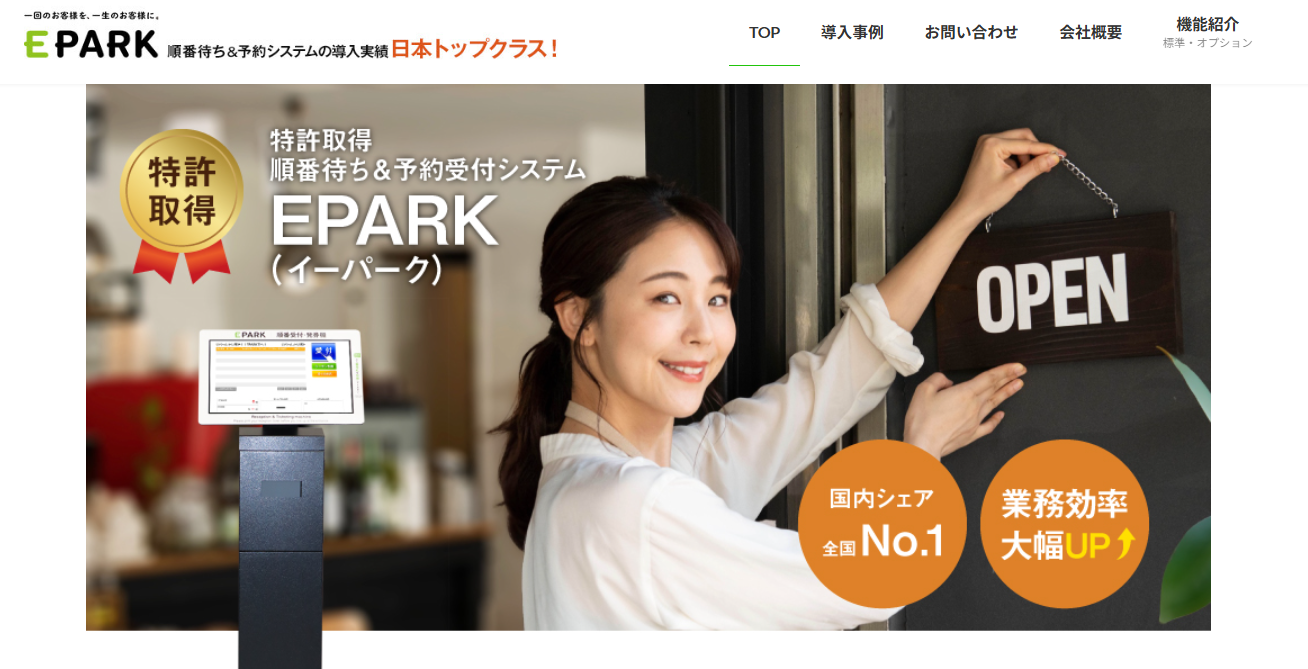 EPARKは、飲食店やクリニック、サロンなど幅広い業種に向けて順番待ち・予約受付サービスを提供するプラットフォームです。オンライン予約だけでなく、順番待ち管理機能を備えている点が特徴です。自社サイトからの受付はもちろん、膨大な会員数を抱えるEPARKポータル経由で強力な新規集客を実現します。集客と受付管理を組み合わせた位置づけのサービスです。