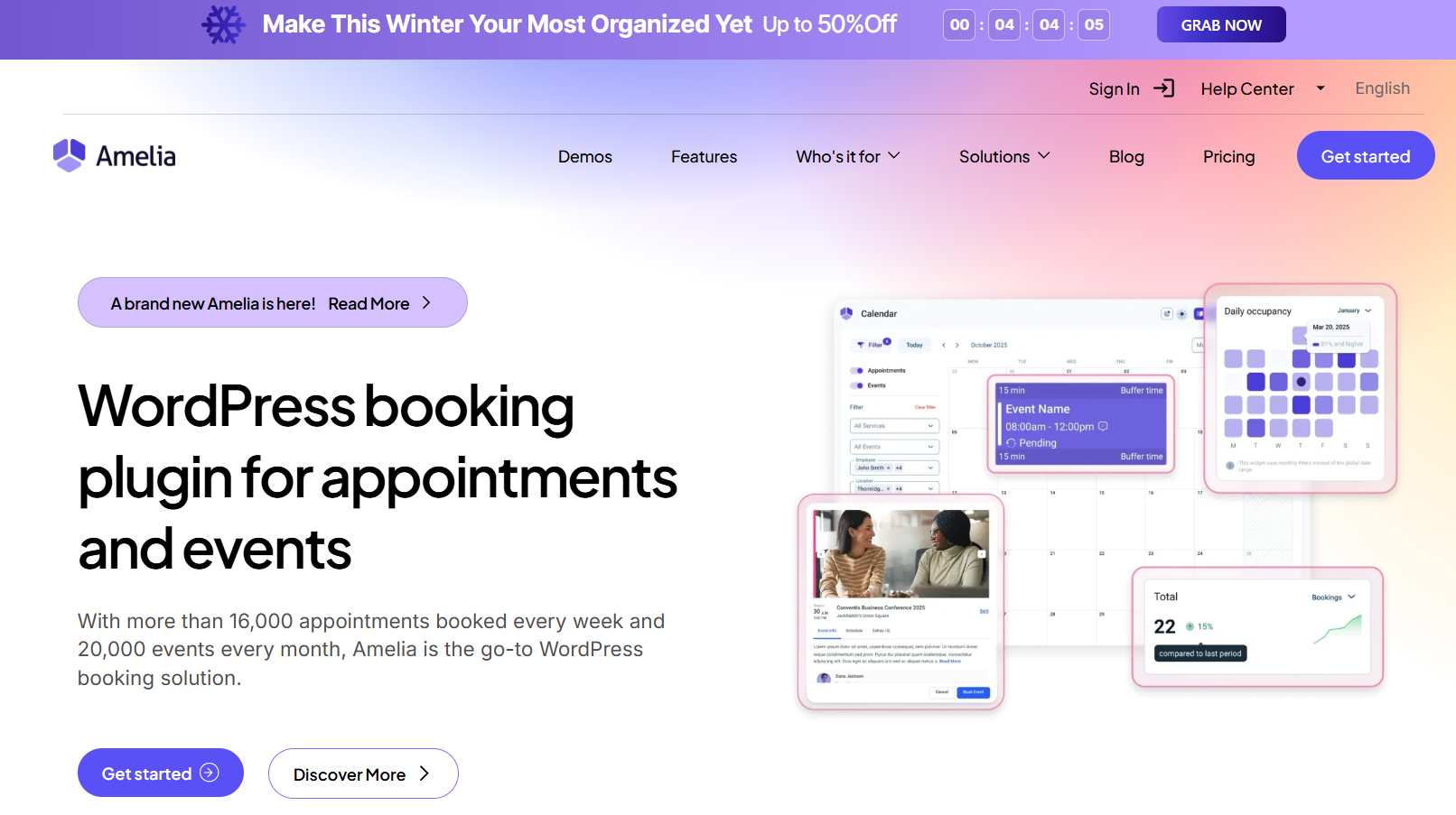 Ameliaは、WordPress向けに提供される予約管理プラグインです。サロン、クリニック、フィットネス、スクールなど幅広い業種に対応しており、自社サイト内で予約受付を完結できます。WordPress環境に直接組み込むことで、外部サービスに依存せずに予約管理を行える点が特徴です。サイト一体型での運用を重視する事業者向けの位置づけです。
