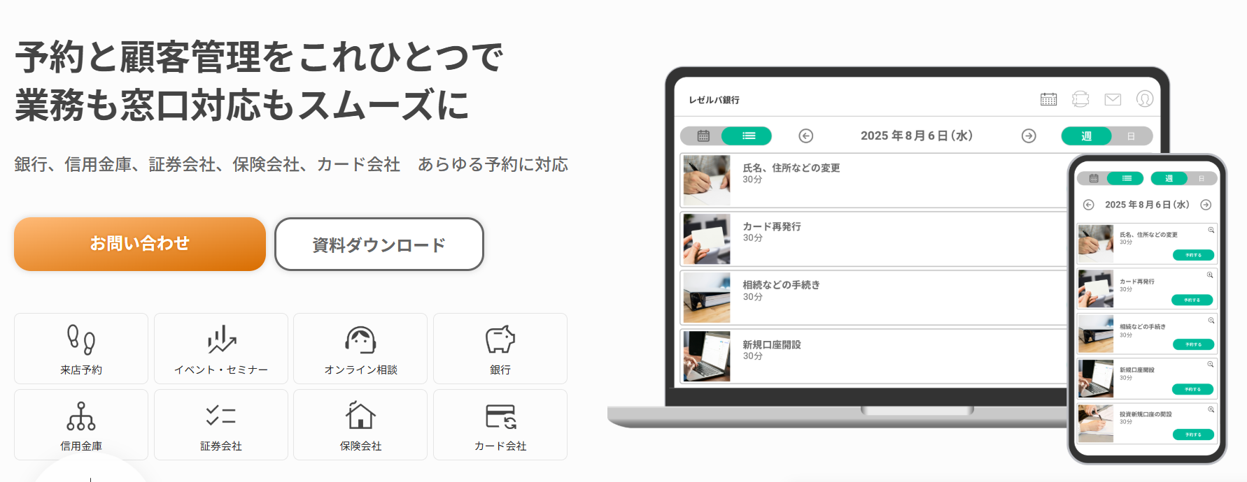 参考サイト:RESERVA(レゼルバ)「金融業界のための予約システム」