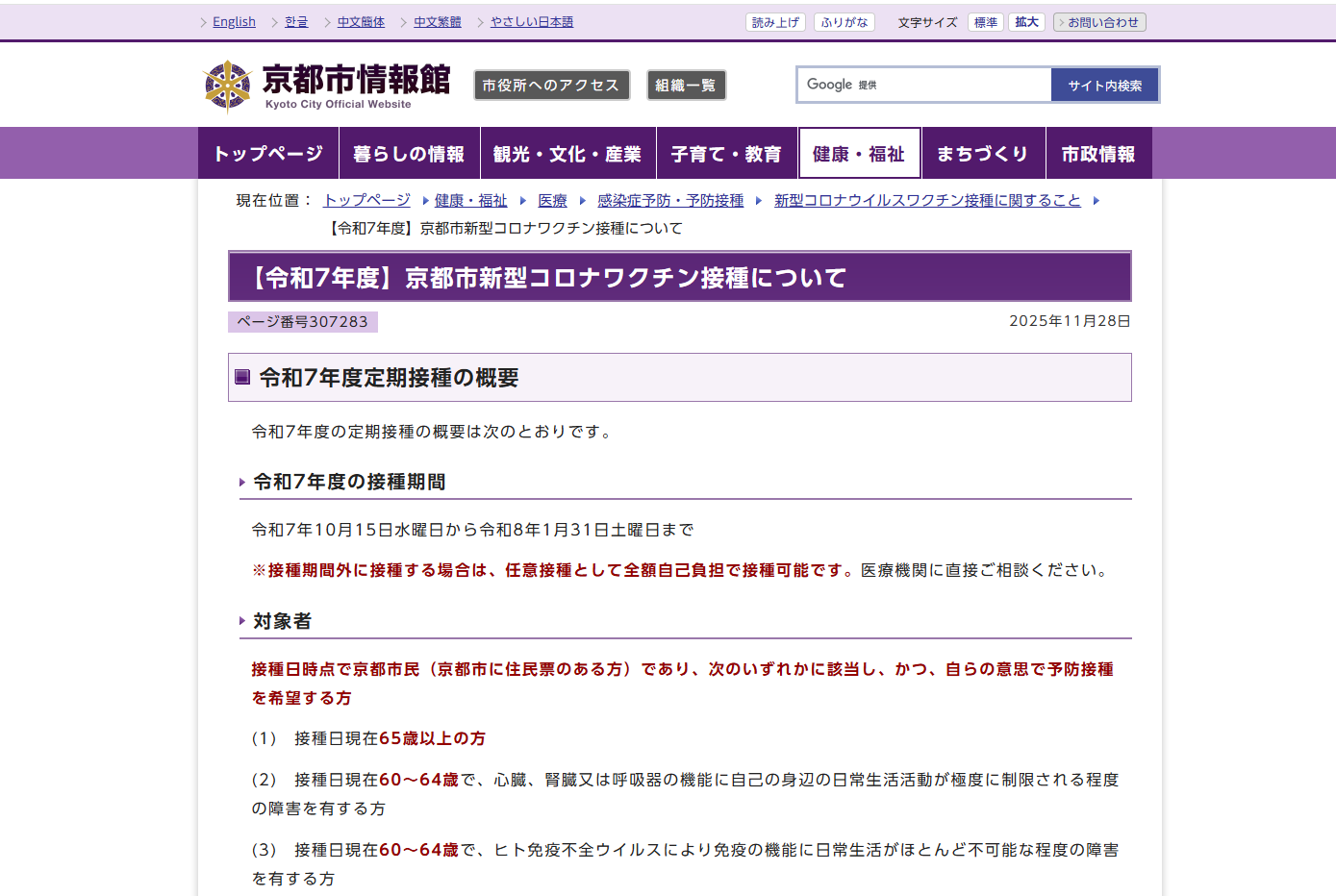 京都市新型コロナワクチン接種ポータルサイト(京都市公式サイト内)