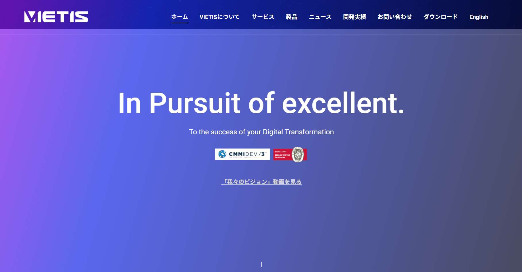 VietISは2009年に設立された、デジタルトランスフォーメーション(DX)推進サポート、システム開発、UI/UXデザイン、システムエンジニアリングなどを手掛けるソフトウェア開発企業です。ベトナムのハノイに本社を構え、日本やアメリカにも支社を持ちます。エンジニアは250人以上在籍しており、そのうち半数以上が日本語を習得。日本国内に45社以上の取引先を持ち、開発実績は総計で300件を超えています。