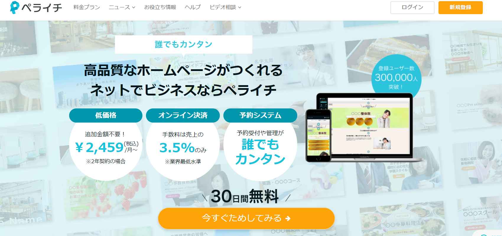 ほとんどの機能を無料で使用可能なホームページ作成ツールです。