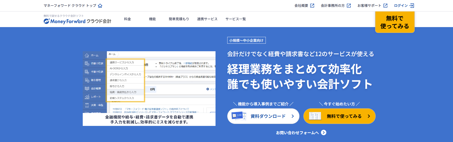 ・その他マネーフォワードサービスと連携可能で経理効率化