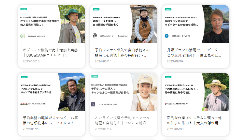 RESERVAマガジンでは、以下のように予約管理システムを導入した運営者の生の声を紹介しており、RESERVAでは多数の宿泊施設運営者に使用されています。RESERVAの宿泊施設のサービスを利用した人々を通じて、RESERVAの他の機能についてもっと理解し、それが利用者のビジネスにもたらす利益を知ることができます。