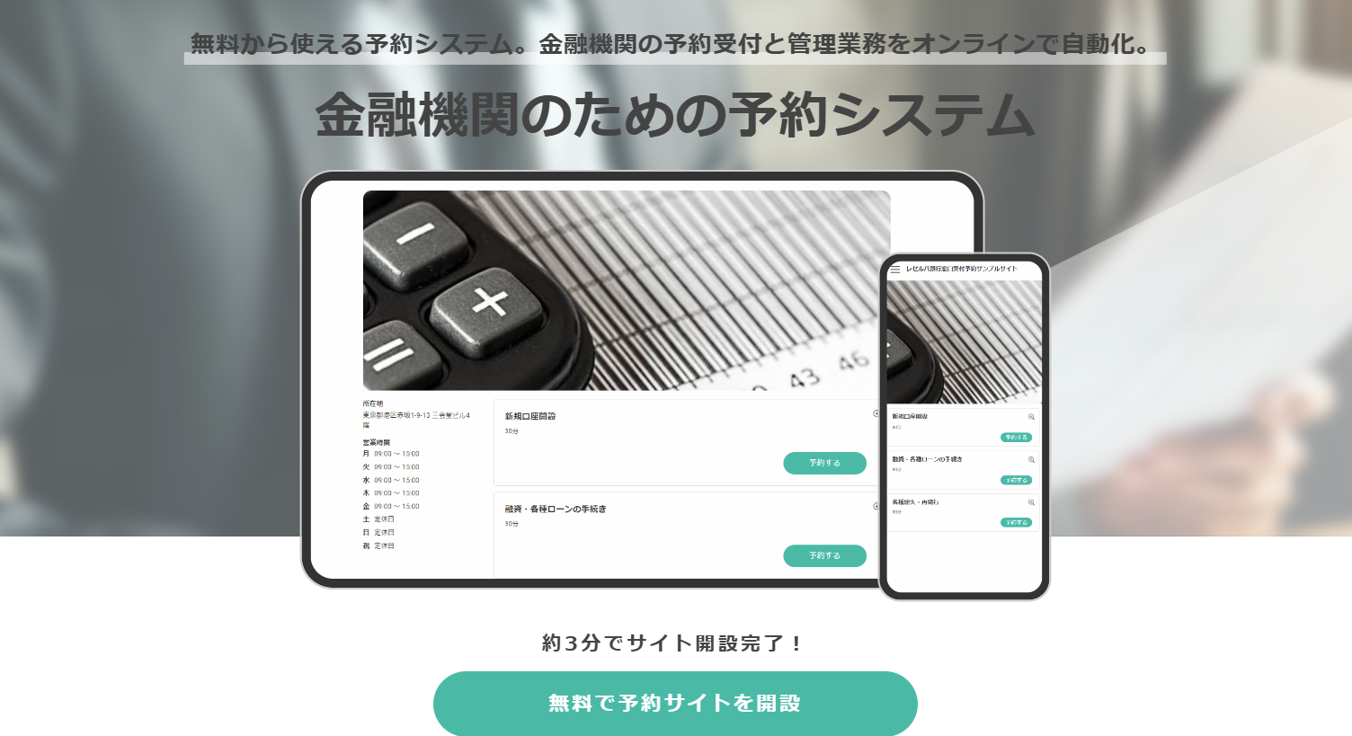 →RESERVA予約システムで作成された銀行セミナー予約のサンプルサイトはこちら