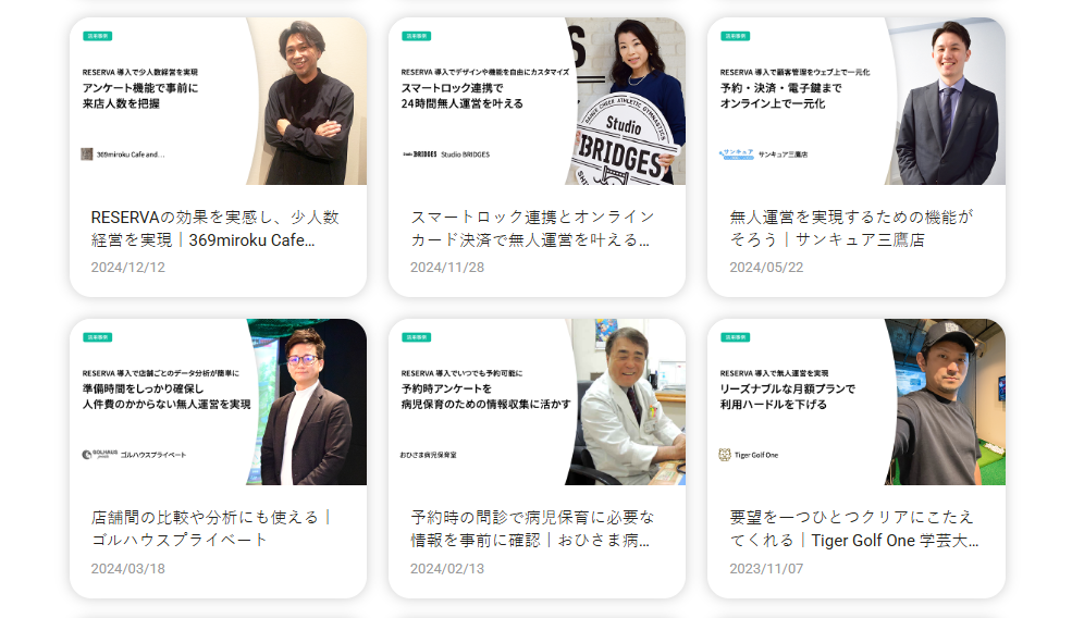 RESERVAマガジンでは、以下のように予約システムを導入した運営者の生の声が紹介されています。今回、図書館の運営者における直接の声は紹介されていませんが、施設タイプで導入された例が掲載されています。