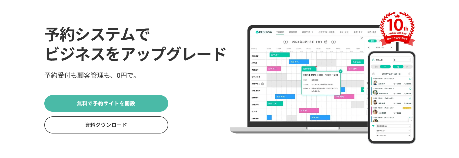 RESERVAは、開設から初期設定・利用開始までのステップがシンプルでわかりやすいため、はじめて予約システムを導入する方やデバイスの操作に自信がない方にも安心してご利用いただけます。また、どんな用途でも活用しやすいように考え抜かれた機能が充実しており、それらを自由にカスタマイズすることで独自の予約サイトを作成できます。予約システムの導入を検討しているプログラミング教室にとって、本記事が参考になると幸いです。